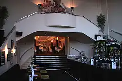 Cinema audiences now gain access to the cinema, via a staircase and side entrance, to a more modest entrance foyer and box office which are located in an area underneath the stalls on the first floor. The ground floor stalls, accessed via stairs in the auditorium, are now laid out with lounge chairs and tables.[2]