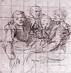 The Ricotta Eaters is a c.1585 oil on canvas painting by Vincenzo Campi, showing four figures eating a round ricotta.[1] The artist himself entitled it Buffonaria, which links its four figures to Commedia dell'arte characters, and depicted himself as Pantalone, wearing red costume.[2] In 1875, the work was presented by Jacques Bernard to the Museum of Fine Arts of Lyon, where it is currently displayed.