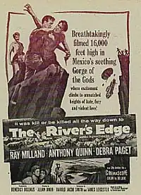 The River's Edge is a 1957 American film noir adventure, crime, and drama DeLuxe CinemaScope film directed by Allan Dwan and starring Ray Milland, Anthony Quinn and Debra Paget. The picture is based on the unpublished short story "The Higher Mountain" by Harold Jacob Smith.[1] Location filming was done in Amecameca and Iztaccihuatl in Mexico.[2] The supporting cast features Harry Carey, Jr. and Chubby Johnson.