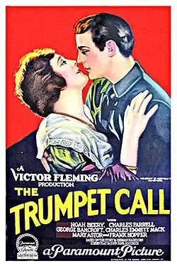 The Rough Riders is a 1927 American silent drama film directed by Victor Fleming, released by Paramount Pictures, and starring Noah Beery, Sr., Charles Farrell, George Bancroft, and Mary Astor. Due to the public apathy towards silent films, a sound version was also prepared early in 1928. While the sound version has no audible dialog, it was released with a synchronized musical score with sound effects using both the sound-on-disc and sound-on-film process. The picture is fictional account of Theodore Roosevelt's military unit in Cuba.[2] This film had an alternate release title, The Trumpet Call.[3] The cinematography was by James Wong Howe and E. Burton Steene.