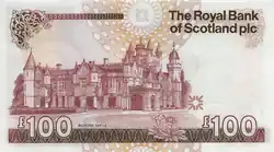 The Royal Bank of Scotland £100 note is a sterling banknote. It is the largest denomination of banknote issued by The Royal Bank of Scotland. The current cotton note, first issued in 1987, bears an image of Lord Ilay, one of the founders of the bank, on the obverse, and a vignette of Balmoral Castle on the reverse.