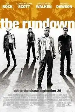 The Rundown (known internationally as Welcome to the Jungle) is a 2003 American action comedy film directed by Peter Berg and written by James Vanderbilt and R.J. Stewart from a story by Stewart. It follows an aspiring chef working as a debt collector for a loan shark who is tasked with retrieving the loan shark's son, who went to Brazil to search for a lost artifact. The film stars Dwayne Johnson,[a] Seann William Scott, Christopher Walken and Rosario Dawson.