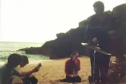 Movietone recording 'the sand and the stars' songs on the Porthchapel beach, Land's End, Cornwall. Taken by Michal Davies