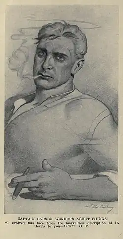 The Sea-Wolf is a 1904 psychological adventure novel by American writer Jack London. The book's protagonist, Humphrey Van Weyden, is a literary critic who is a survivor of an ocean collision and who comes under the dominance of Wolf Larsen, the powerful and amoral sea captain who rescues him. Its first printing of forty thousand copies was immediately sold out before publication on the strength of London's previous The Call of the Wild.[1] Ambrose Bierce wrote, "The great thing—and it is among the greatest of things—is that tremendous creation, Wolf Larsen... the hewing out and setting up of such a figure is enough for a man to do in one lifetime... The love element, with its absurd suppressions, and impossible proprieties, is awful."[2]