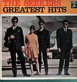 The Seekers' Greatest Hits is a compilation album released in Australia by EMI's Columbia label (Catalogue No. SCXO 7830) in July 1968 on the break-up of the Seekers. This album did not include "I'll Never Find Another You" or "A World of Our Own" which were previously released on The Seekers Sing Their Big Hits (1965) W&G 25/2512. The album peaked at number 1 for 17 weeks and was the highest selling album in Australia in 1968. It was also the first time an Australian artist had peaked at number 1 on the Australian album chart.[1]
