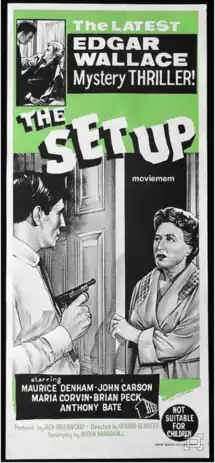 The Set Up (also known as The Set-up) is a 1963 British second feature film directed by Gerard Glaister and starring Maurice Denham, John Carson and Maria Corvin.[1] Part of the series of Edgar Wallace Mysteries films made at Merton Park Studios, it is based on a Wallace story.