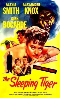 The Sleeping Tiger is a 1954 British film noir directed by Joseph Losey and starring Alexis Smith, Dirk Bogarde and Alexander Knox. It was Losey's first British feature, which he directed under the pseudonym of Victor Hanbury due to being blacklisted in the McCarthy Era.[2] It was shot at Walton Studios and on location in London. The film's sets were designed by the art director John Stoll. It was released by Anglo-Amalgamated while in America it was distributed by Astor Pictures.[3]