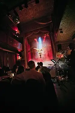 The concept of performers and impresarios James and Camille Habacker, the venue first opened in 1999 when the neo-burlesque scene of New York was in its infancy,[1] becoming the first venue built specifically to showcase the work of a new collective and designed to nurture emerging talent. The shows consist of performance artists, dancers, drag queens, vaudeville, variety and sideshow acts, often performing outrageous, messy and lewd routines.[2] The Habackers encourage performers to push themselves to try out new work without fear of censorship.[1]