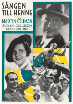 The Song to Her (Swedish: Sången till henne) is a 1934 Swedish comedy film directed by Ivar Johansson and starring Martin Öhman, Sickan Carlsson and Åke Jensen.[1] It marked the film debut of Kristina Söderbaum, who went on to be a star of German cinema in the Nazi era. It was also the first screen appearance of Norwegian actress Greta Gynt who went on to star in British films. The film was made at the Råsunda Studios in Stockholm and on location around the city including at the Royal Swedish Opera. The film's sets were designed by the art director Arne Åkermark.