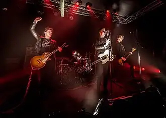 In November 2015, the band went into the Vox Ton studios in Berlin with Grammy award-winning producer Dave Cobb[1] for ten days to record their third album, Skydogs.[2] The album came out on 18 March 2016 to critical acclaim in Benelux. The group’s sound is described as a raw blend of the early Black Sabbath, Jack White, The Stooges and The Black Keys, continuously in search of the essence of rock and psychedelia.[3][4] They sold-out another headline release show at Ancienne Belgique[5] on 15 April 2016. In France, Stéphane Saunier chose the album as "Album de la semaine" in his television program on Canal+ and The Sore Losers presented Skydogs for a live audience in a Parisian TV-studio. Also in France, Philippe Manoeuvre, editor-in-chief of the Rock & Folk Magazine, chose Skydogs as "Best Album of 2016". The Sore Losers supported the album with an extensive tour through France, as support act for bands like White Denim, Boss Hog, The Bellrays and Lords of Altamont, and later as headliner of their own tour.