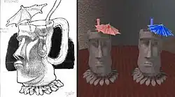 Ron Cobb worked as The Space Bar's concept artist and art director,[20][8] the first time the latter position had existed in a Meretzky production. Previously, Meretzky had relied on his own "awful sketches" to direct the art team.[20] One such sketch was the starting point for The Space Bar's Vedj race, which was then developed through several iterations by Cobb.[22] The Mos Eisley Cantina sequence was among the game's points of influence,[10] and the team sought to match that scene in quality, according to Meretzky.[8] He noted that the game's diverse cast meant that they "weren't just creating new characters every week, but entirely new races."[22] Boffo relied on out-of-house subcontractors for The Space Bar's graphics, including Dub Media,[8] which had produced the 3D visuals for the developer's canceled Reverse Alien game.[22]