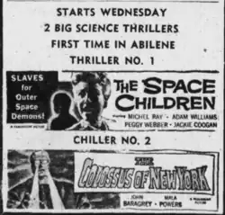 - ^ Hopper, Hedda (October 5, 1957). "'Space Children' Set as Science-Fiction". Los Angeles Times. Los Angeles, California, USA. p. B2. ISSN 0458-3035. OCLC 3638237. Archived from the original on April 11, 2013. Retrieved March 10, 2013.