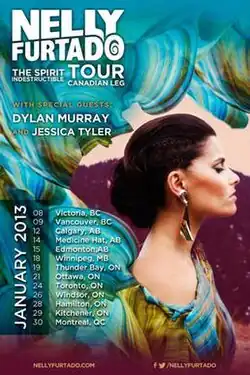 - ^ "C95 FM presents NELLY FURTADO THE SPIRIT INDESTRUCTIBLE TOUR WITH SPECIAL GUESTS DYLAN MURRAY JESSICA TYLER" (Press release). Saskatoon, Saskatchewan: Universal Music Group. Nelly Furtado Website. 26 November 2012. Retrieved 11 January 2014.