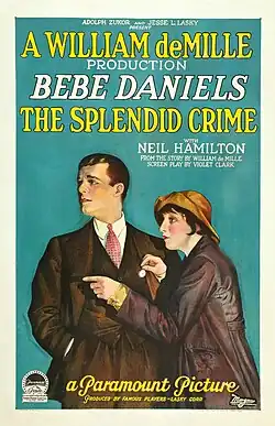 The Splendid Crime is a lost[1] 1926 American crime drama film directed by William C. deMille and starring Bebe Daniels. Famous Players–Lasky produced and Paramount Pictures distributed.[2]