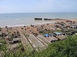 The beach was originally a small landing area; hence the small footprint of the net shops. The building of the 1887 groyne at Rock-A-Nore and the 1896 harbour, however, stopped the eastward longshore transport of shingle along the coast, which is the function of groynes. As a result, the Stade steadily grew seaward, providing new room for the fishing fleet and necessary amenities.