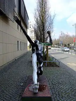 The Step of the Century (in German: Jahrhundertschritt) is a bronze sculpture that was created by Wolfgang Mattheuer in 1984. It is considered one of the most important works of art in the GDR at the time of the division of Germany and is a parable of the turmoil of the 20th century.