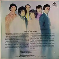 The Story of Simon Simopath is the debut album by British psychedelic band Nirvana, released by Island Records in 1967. Described by Melody Maker's Chris Welch as a "science fiction pantomime album", the songs are linked with a story on the back cover which details the dream of Simon Simopath to fly.[2] In constructing a narrative storyline to connect the songs, The Story of Simon Simopath can be considered the very first full-length rock opera, predating both The Pretty Things' December 1968 entry S.F. Sorrow and The Who's May 1969 release Tommy by over a year. "Pentecost Hotel" was released as a single with the non-album b-side, "Feelin' Shattered". "Wings of Love" was the next single, also with a non-album b-side, "Requiem to John Coltrane". "Girl in the Park", from the second album, All of Us, featured the b-side, "C Side In Ocho Rios", which is an instrumental version of "In the Courtyard of the Stars".