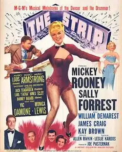 The Strip is a 1951 American crime film noir starring Mickey Rooney and Sally Forrest, with William Demarest, James Craig, and Kay Brown in supporting roles. Directed by László Kardos, the picture was shot largely on location in and around the Sunset Strip, including performances at the popular nightclubs Mocambo and Ciro's and scenes at the restaurants Little Hungary and Stripps.[2]