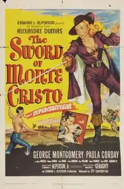 The Sword of Monte Cristo is a 1951 American adventure film written and directed by Maurice Geraghty. The film stars George Montgomery, Rita Corday, Berry Kroeger, William Conrad, Rhys Williams and Steve Brodie. It is loosely based on the 1844 novel The Count of Monte Cristo by Alexandre Dumas. The film was released on March 3, 1951, by 20th Century Fox.[1][2][3]
