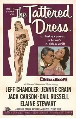 The Tattered Dress is a 1957 American CinemaScope film noir crime film released by Universal Pictures and directed by Jack Arnold. It stars Jeff Chandler, Jeanne Crain, Jack Carson, Gail Russell and Elaine Stewart.[2]