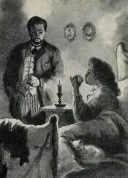 According to the critic Yuri Sobolev,[2] who cites the Taganrog history scholar Pavel Filevsky as a source,[3] the prototype for Nikitin might have been the teacher of Latin in the Taganrog City Gymnasium V.D. Starov, although Chekhov has, apparently 'softened' some aspects of the latter's tragic story.[4]