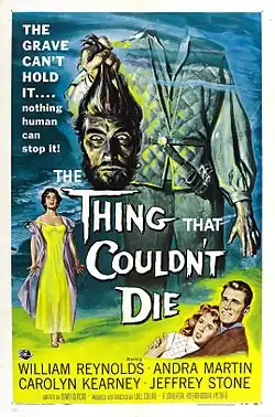 The Thing that Couldn't Die is a 1958 American horror film about a man executed for sorcery 400 years in the past whose detached head hypnotizes people in order to have them reunite his head with his body so he could live and feast on the blood of people. It was produced and directed by Will Cowan and starred William Reynolds, Andra Martin, Jeffrey Stone, and Carolyn Kearney. Based on an original screenplay by David Duncan for Universal Pictures, it was released in the United States on a double bill in May 1958[1] with the British Hammer Films classic Horror of Dracula.
