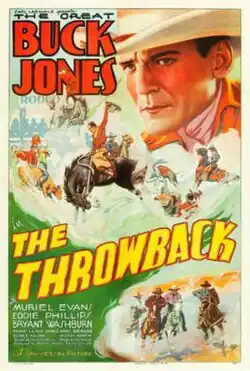 The Throwback is a 1935 American Western film directed by Ray Taylor, written by Frances Guihan, and starring Buck Jones, Muriel Evans, George "Gabby" Hayes, Bryant Washburn, Eddie Phillips and Paul Fix. It was released on October 1, 1935, by Universal Pictures.[1][2][3]