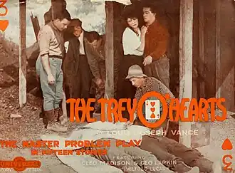 The Trey o' Hearts is a 1914 American 15-chapter action film serial directed by Wilfred Lucas and Henry MacRae. It was written by Allan Dwan and Bess Meredyth, based on a story of the same name by Louis Joseph Vance. The first chapter ran 3 reels, while the others were two-reelers. The film is currently considered to be lost. Some sources list Lon Chaney in the cast (uncredited), but this is disputed and unconfirmed.[1][2]