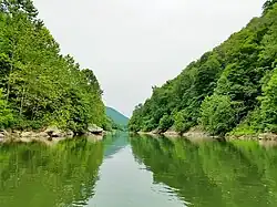 The Trough is a 6-mile long wooded gorge carved by the South Branch Potomac River (SBPR) and situated in the Allegheny Mountains of Hampshire and Hardy Counties, West Virginia, US.[1][2][3] The area was the site of a 1756 skirmish of the French and Indian War, known as the "Battle of the Trough".[4]