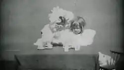 The Twins' Tea Party is an 1896 British short silent actuality film, produced and directed by Robert W. Paul. The film "was one of the very first 'facials'," which according to Michael Brooke of BFI Screenonline was "a popular genre in early British cinema that exploited what to 1896 audiences was the astonishing novelty of being able to see moving images of recognisable people in medium close-up as they reacted to a particular situation."[1] John Barnes, author of The Beginnings of the Cinema in England, adds that "this charming one-shot film of two infant girls reluctantly sharing tea was one of the most popular items exhibited in R.W. Paul's programmes at the Alhambra Theatre in 1896."[2]