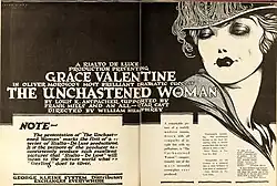 The Unchastened Woman is a lost[1] 1918 silent film drama directed by William J. Humphrey and starring Grace Valentine. The film was based on the 1915 play The Unchastened Woman which starred Emily Stevens on Broadway.[2] Theda Bara appeared in a 1925 version which was her comeback film after 4 years.[3][4]