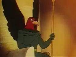 Dr. Henderson & Lois have been captured by a race of "Hawk Men", living in the caverns. The explosion blasted open a hole in their cave, giving them a passage to the surface. Dr. Henderson & Lois are brought before their king. They see a statue of Dr. Henderson's father above the king's throne. Neither of them understands why the Hawk Men have a statue like that or where they got it. The king signals to the others and Lois & Dr. Henderson are tied to a stone slab.