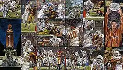 The painting was officially unveiled May 6 and 7, 2006, at a gallery called Art on 5th.[1] The work is oil on canvas. Following his usual practice, Otterstad completed the painting without the use of paint brushes. The painting consists of 15 separate images, each painted on a separate canvas and then stitched together to form a single work measuring approximately 5 feet high by 8 feet wide (1.52 by 2.44 metres). Each image features one moment from either the championship game or the ensuing Texas celebration.