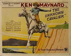 The Unknown Cavalier is a 1926 American silent Western film directed by Albert S. Rogell and starring Ken Maynard, Kathleen Collins, and David Torrence.[1] It is based on the 1923 novel Ride Him, Cowboy by Kenneth Perkins.[2]