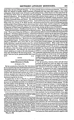 - "Hans Phaall -- A Tale", Southern Literary Messenger, Volume 1, Issue 10, June, 1835, pp. 565–580