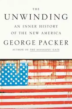The Unwinding: An Inner History of the New America is a 2013 non-fiction book by the American journalist George Packer. The book uses biographies of individual Americans as a means of discussing important forces in American history from 1978 to 2012, including the subprime mortgage crisis, the decline of American manufacturing, and the influence of money on politics. The Unwinding includes lengthy profiles of five subjects: a Youngstown, Ohio factory worker turned community organizer, a biodiesel entrepreneur from North Carolina, a Washington lobbyist and Congressional staffer, the Silicon Valley entrepreneur Peter Thiel, and people involved in the distressed housing market in Tampa, Florida. Interspersed with these longer accounts are ten briefer biographical sketches of famous Americans such as the rapper Jay-Z, the politician Newt Gingrich, and the restaurateur and food activist Alice Waters.