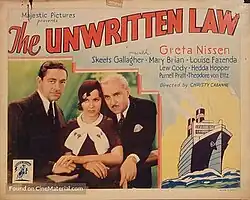 The Unwritten Law is a 1932 American pre-Code mystery film directed by Christy Cabanne and starring Greta Nissen, Richard "Skeets" Gallagher, and Mary Brian. It was distributed by the independent Majestic Pictures.[2]