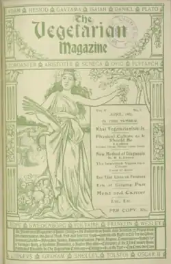 The Vegetarian Magazine was an American magazine dedicated to vegetarianism that was published from 1900 to 1934 and was the official organ of several organizations, including the Vegetarian Society of America. During the early 20th century the magazine was also known for its support of women's suffrage.[1][2] The magazine advertised itself as standing for "a cleaner body, a healthier mentality and a higher morality".[3]