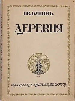 The Village (Russian: Деревня, romanizedDerévnya) is a short novel by the Nobel Prize-winning Russian author Ivan Bunin, written in 1909 and first published in 1910 by the Saint Petersburg magazine Sovremenny Mir under the title Novelet (Повесть). The Village caused much controversy at the time, though it was highly praised by Maxim Gorky (who from then on regarded the author as the major figure in Russian literature), among others, and is now generally regarded as Bunin's first masterpiece.[1][2] Composed of brief episodes set in its author's birthplace at the time of the 1905 Revolution, it tells the story of two peasant brothers, one a brute drunk, the other a gentler, more sympathetic character. Bunin's realistic portrayal of the country life jarred with the idealized picture of "unspoiled" peasants which was common for the mainstream Russian literature, and featured the characters deemed 'offensive' by many, which were "so far below the average in terms of intelligence as to be scarcely human."[3]