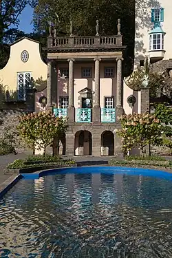 ![]() The piazza in Portmeirion, the real-life filming location for exterior shots of the Village | |