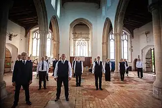 Plans to develop a new show for Spring/Summer 2020, inspired by the idea of a bird's-eye view of Holy Trinity Church in Blythburgh, had to be adapted as a result of the Covid-19 pandemic. The original intention had been to perform in the Church (known as the Cathedral of the Marshes) in July 2020. Since singing together in person was impossible, the project was re-designed as a film[26] that was premiered on 2 October at St. Mary's Works in Norwich. The film explores themes of flight, perspective, scale, solitude and connection; and was made by filmmaker Nathan Clarke, with Art Direction from Sal Pittman, including footage contributed by choir members over the course of the project. A prologue[27] to the film was also produced, consisting of images contributed by the choir and instrumental versions of some of the songs.[28][29]