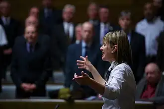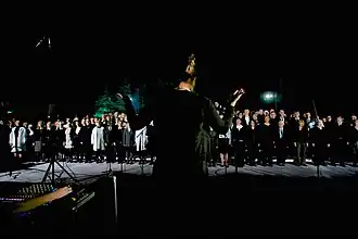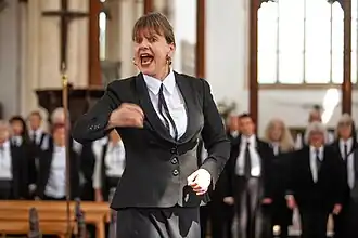 Siân Croose is a singer, conductor and performance maker with over 30 years' experience creating and directing music projects in the UK. After an apprenticeship in bands and alternative theatre, she trained on the Community Music programme founded by John Stevens. She has run choirs, vocal ensembles, and workshops for singers since 1990, and performed with composer Helen Chadwick and a cappella ensemble Human Music in a wide range of UK festivals and performance projects. Composition projects include Harmonium, a wordless systems-based a cappella project for women's voices and The Dawn Chorus with American composer Brendan Taaffe. She runs Norwich-based choir Big Sky, regularly commissioning new music from award-winning songwriter Chris Wood and others, and performing with storyteller Hugh Lupton and multi-instrumentalist Adrian Lever.[5]