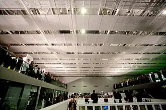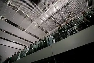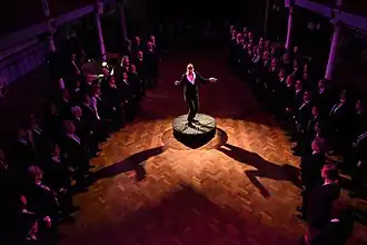 The Observatory was a site-responsive piece presented as part of the Norfolk & Norwich Festival and created as part of a partnership with the Sainsbury Centre for Visual Arts (SCVA) and the University of East Anglia (UEA).[11] The piece was an exploration of humankind's relationship with space - and our gradual attempts to understand and explore it with the poetic, the scientific and the musical. Weightlessness, distance, fear of the unknown, infinity and astronomical geometry inspired this piece which was staged in and around the SCVA. The SCVA provided a futuristic background for this piece which informed the design of the show – and also the opportunity for the audience to experience this iconic building quite differently.