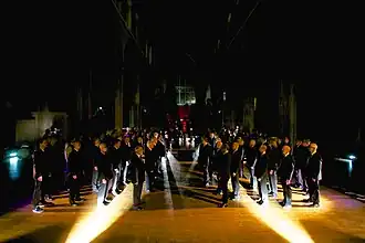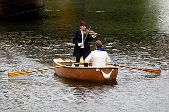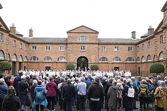 Norwich Over the Water was a promenade outdoor choral piece around the River Wensum and Norwich University of the Arts quad in Norwich's historic centre of the textile and dyeing industries.[12] Taking place on a Saturday afternoon, the piece started at The Octagon Chapel and processed across bridges to a finale in the quad of Norwich University of the Arts.
