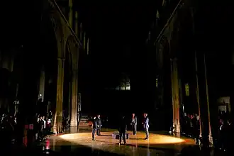 This site-responsive piece took place in Norwich Cathedral on 23 January 2017 – making extensive use of the space in a carefully choreographed promenade performance. The seating was removed from the nave to allow the performers to move freely throughout the space and to increase the effect of the lighting design.[19][12]