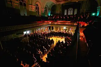 This piece was performed on 23 January 2016 in St. Andrews Hall, Norwich. It was the last show delivered as part of the 'Singing the City' programme, and it was a seated performance in a well-known Norwich building, which was used in an unusual way. It marked the turning of the year with choral music that took us from the dark of winter to the promise of spring, exploring the themes of dark and light, hibernation and awakening.[13][14][11]