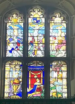 The Vyne Chapel forms part of The Vyne, a 16th-century country house in the parish of Sherborne St John, near Basingstoke, in Hampshire, England. The chapel is noted for its rare 16th century stained glass. The upper panels of the glass show scenes from the passion of Christ; the lower panels contain portraits of King Henry VIII, his first wife Catherine of Aragon, and Henry's sister Margaret Tudor, Queen of Scotland, all kneeling in prayer, together with their respective patron saints.[1] Henry VIII was a guest at The Vyne both with his first wife Catherine of Aragon and later with Anne Boleyn.[2]
