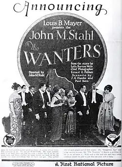 The Wanters is a 1923 American silent society drama film produced by Louis B. Mayer, directed by John M. Stahl and distributed by Associated First National Pictures, which became First National Pictures in 1924. The film stars Marie Prevost, Robert Ellis, and Norma Shearer.[1][2][3]