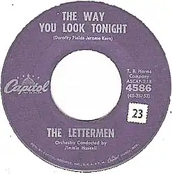 In the movie, Astaire sang "The Way You Look To-night" to Ginger Rogers while she was washing her hair in an adjacent room.[5] Astaire's recording was a top seller in 1936. Other versions that year were by Guy Lombardo and Teddy Wilson with Billie Holiday.[4]