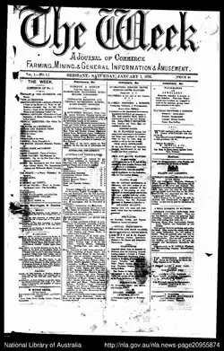 The Week was a newspaper published in Brisbane, Queensland, Australia. Its masthead described it as "A Journal of Commerce, Farming, Mining & General Information & Amusement".[1]